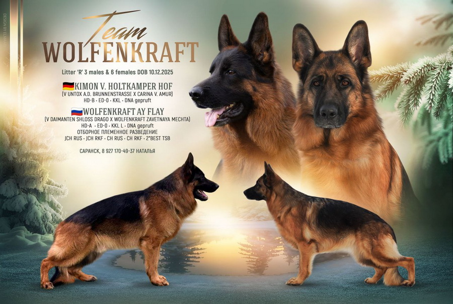 Мы очень ответственно подходим к разведению немецкой овчарки. Все наши собаки проходят обязательный курс дрессировки, все проверки по здоровью (в том числе, в обязательном порядке, проверку на дисплазию), участвуют в выставках самого высокого ранга, имеют пожизненный допуск в племенное разведение, ну а самое главное - они самые любимые и холёные! У каждой нашей собаки есть любимый владелец, который и занимается со своей собакой. Детки рождаются не "на ферме", а в любви и заботе, поэтому и вырастают ориентированными на человека, социализированными и легко управляемыми.