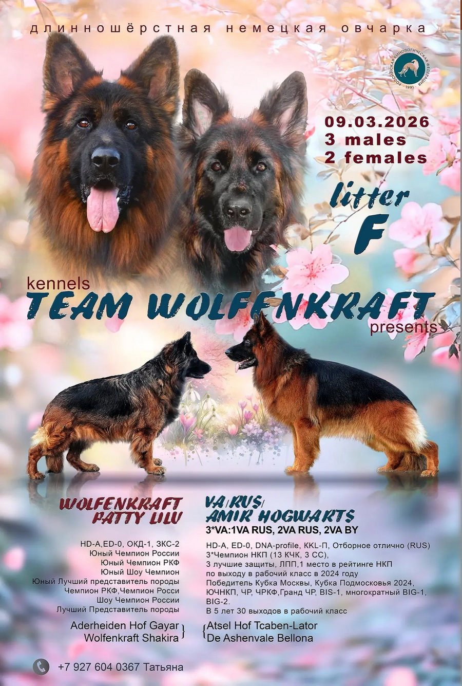 Более подробную информацию о предлагаемых щенках и их родителях можно найти на вкладке сайта "НА ПРОДАЖУ", а также по указанным в контактах телефонам!